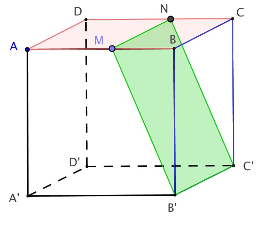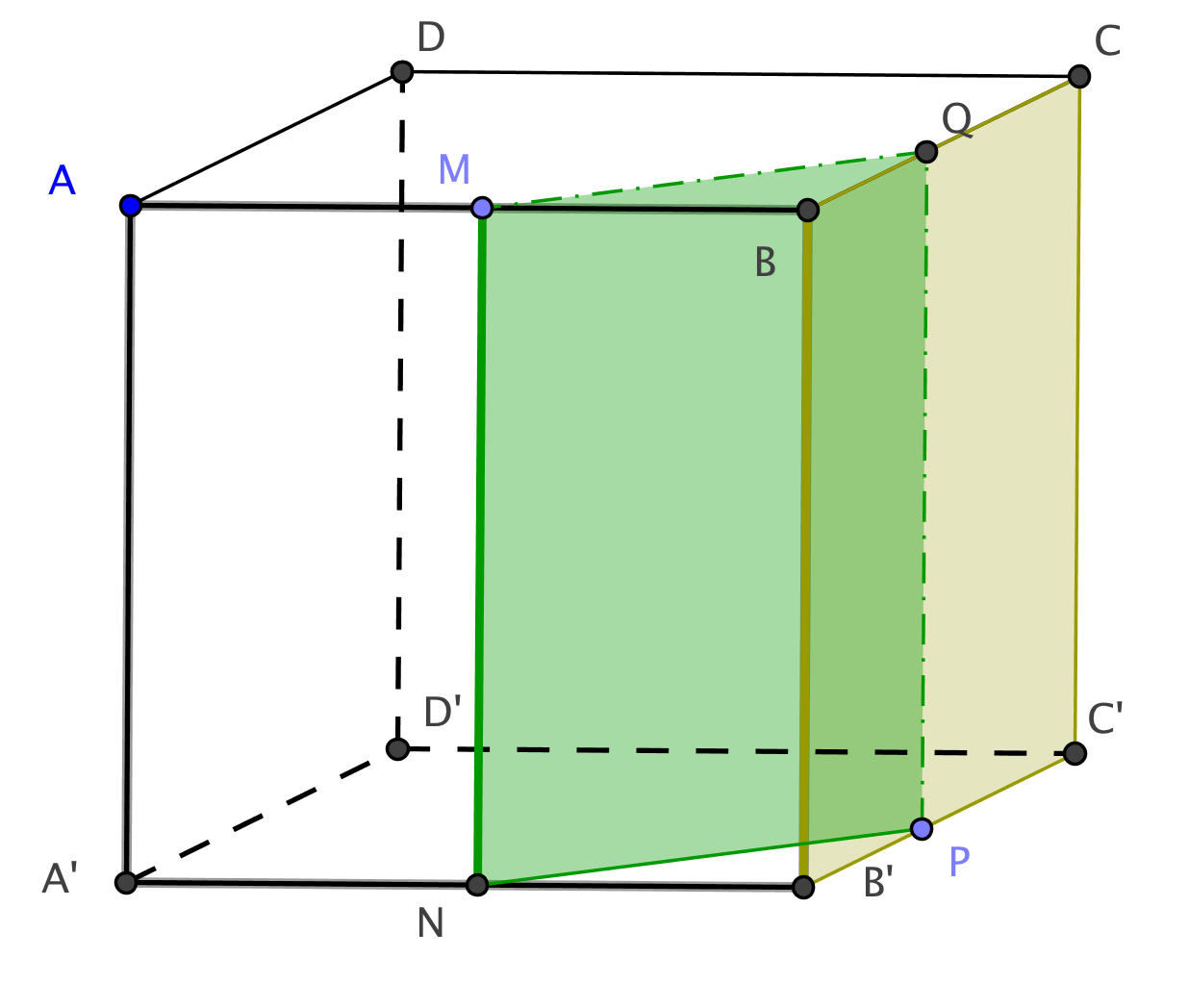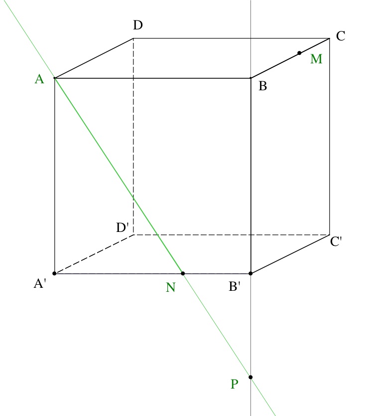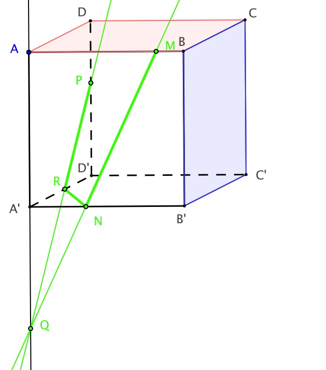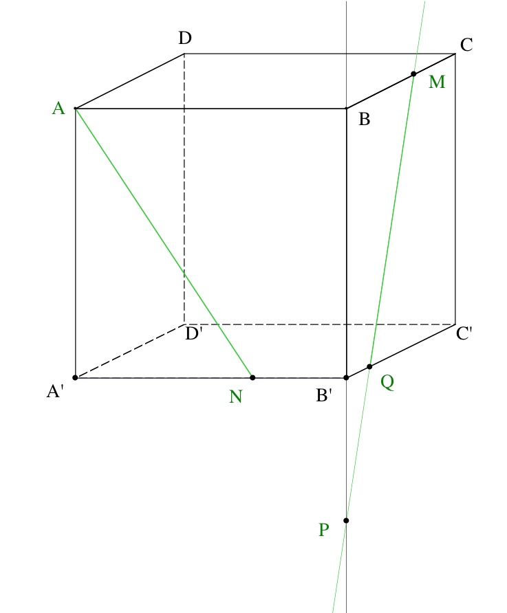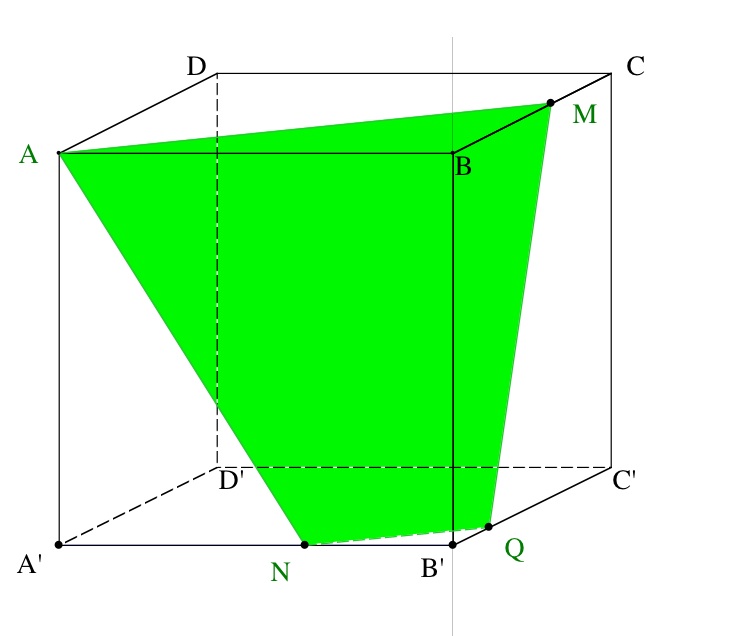 A N B'Q M B du cube située devant ce quadrilatère. Pour ce faire, nous utilisons les pyramides construites pour établir la section.
